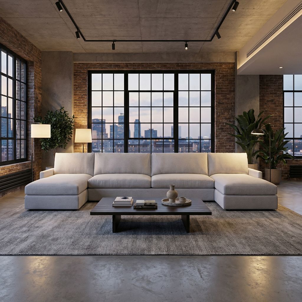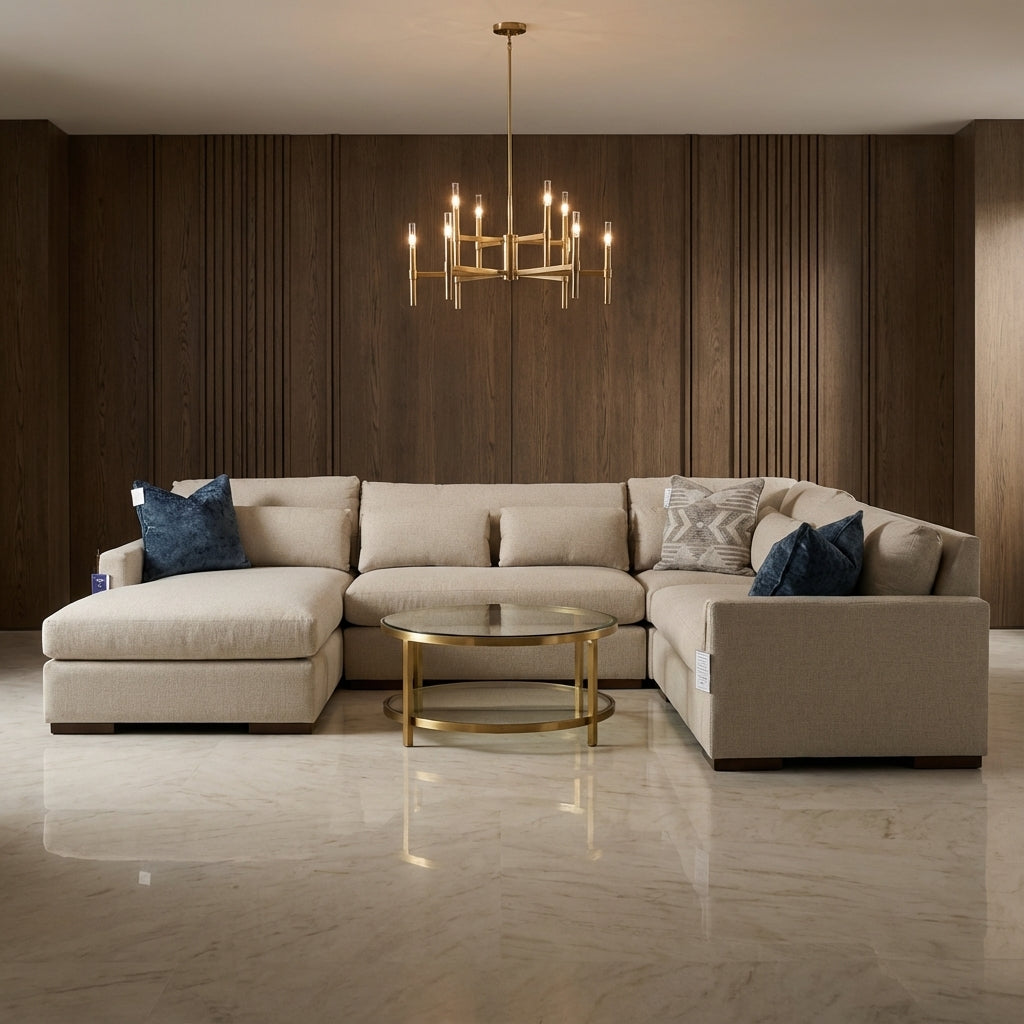 Glenda Quick Ship 144" x 104" Sectional + Right Chaise - Crypton Natural Linen