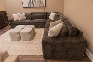 Everette Luxe Express Ship 141" x 137" 5 Cushion Trillium Sectional + Kidney Pillow - Performance Dark Truffle
