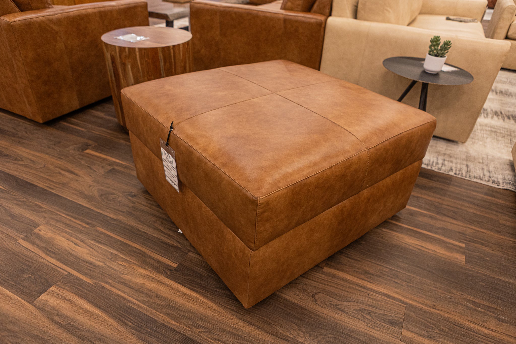 Bodie 36" Square Storage Top Grain Leather Ottoman - Desert Sand